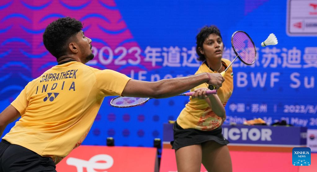 Sai Pratheek K (L) /Tanisha Crasto of India compete during the mixed doubles match against Kenneth Zhi Hooi Choo/Gronya Somerville of Australia during the group C match between India and Australia at BWF Sudirman Cup in Suzhou, east China's Jiangsu Province, May 17, 2023. (Xinhua/Jia Haocheng)
