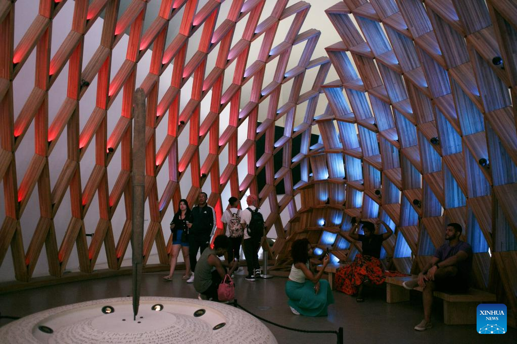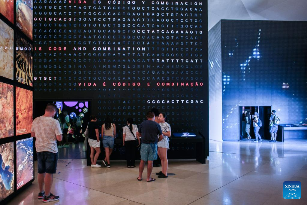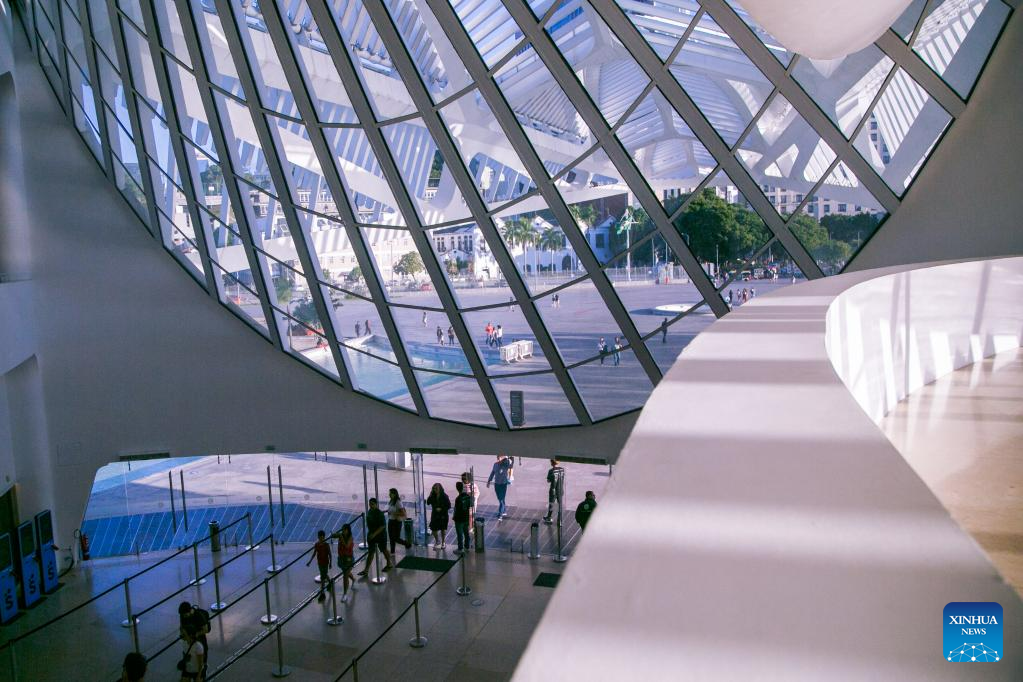 People visit the Museum of Tomorrow in Rio de Janeiro, Brazil, May 16, 2023. The museum is a landmark of Rio de Janeiro and a space meant to explore, imagine, and conceive all the possibilities for constructing the future. (Photo by Claudia Martini/Xinhua)
