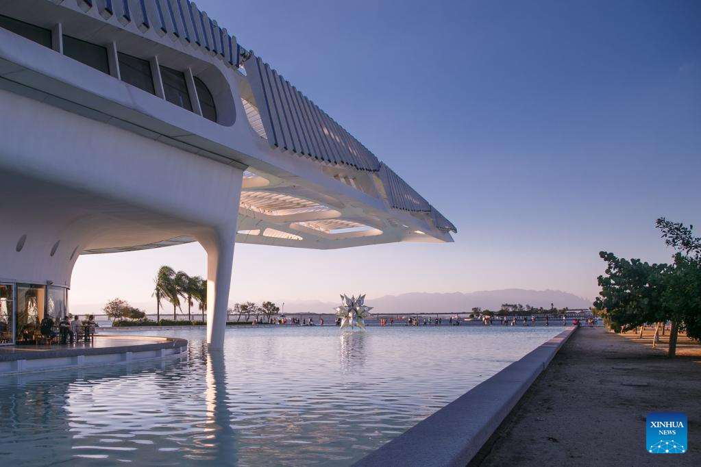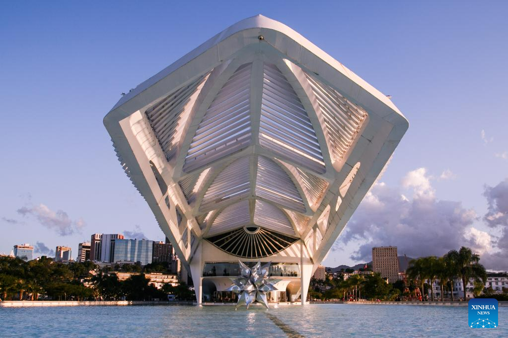 This photo taken on May 16, 2023 shows a view of the Museum of Tomorrow in Rio de Janeiro, Brazil. The museum is a landmark of Rio de Janeiro and a space meant to explore, imagine, and conceive all the possibilities for constructing the future. (Photo by Claudia Martini/Xinhua)