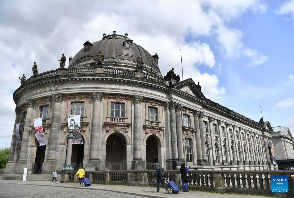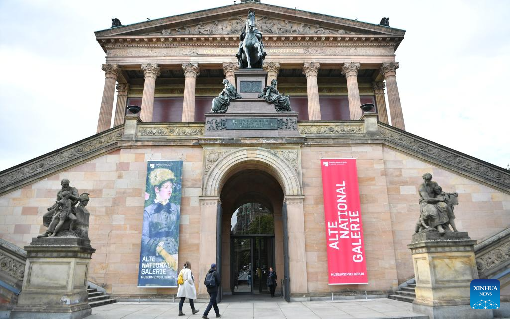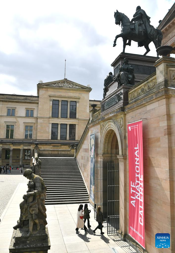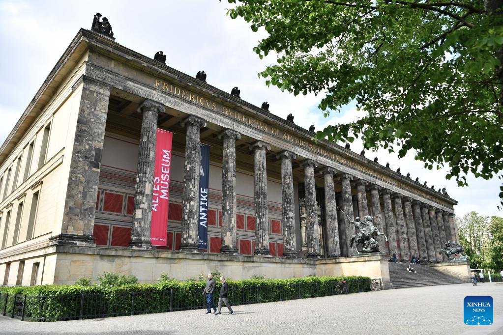 People visit the Alte Nationalgalerie at Museum Island in Berlin, Germany, May 16, 2023. Museum Island, a UNESCO world heritage site, is located at the northern part of Spree Island in Berlin. Its name comes from the complex of worldwide famous museums such as Altes Museum (Old Museum), Neues Museum (New Museum), Alte Nationalgalerie (Old National Gallery), Bode Museum and Pergamon Museum. May 18 marks the International Museum Day. (Xinhua/Ren Pengfei)