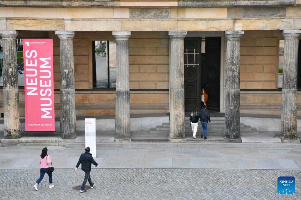 Visitors walk in the Neues Museum at Museum Island in Berlin, Germany, May 16, 2023. Museum Island, a UNESCO world heritage site, is located at the northern part of Spree Island in Berlin. Its name comes from the complex of worldwide famous museums such as Altes Museum (Old Museum), Neues Museum (New Museum), Alte Nationalgalerie (Old National Gallery), Bode Museum and Pergamon Museum. May 18 marks the International Museum Day. (Xinhua/Ren Pengfei)
