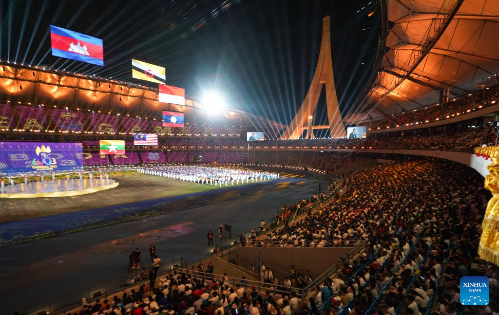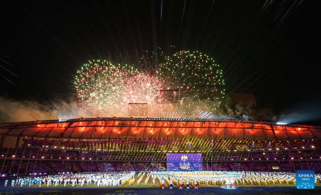 This photo taken on May 17, 2023 shows the closing ceremony of the 32nd Southeast Asian (SEA) Games in Phnom Penh, Cambodia. (Photo by Ly Lay/Xinhua)