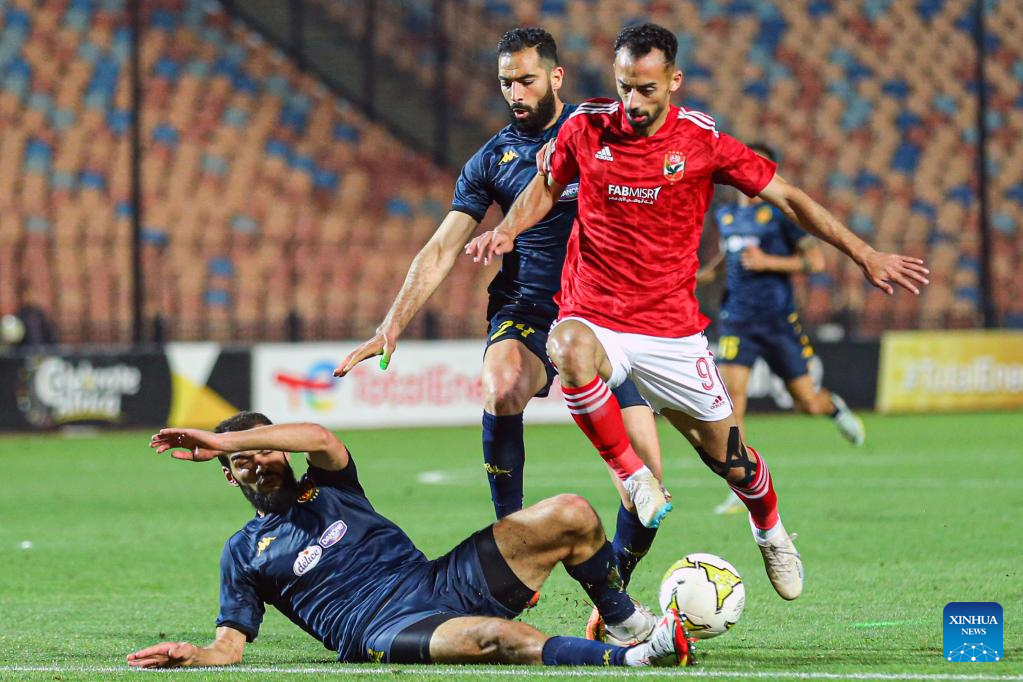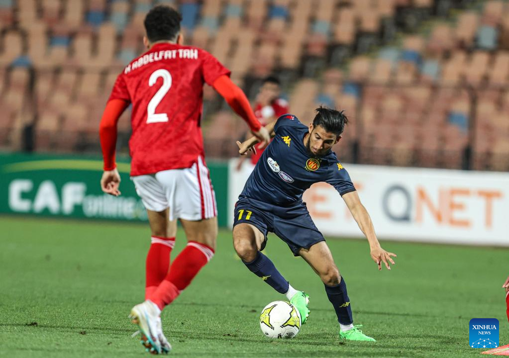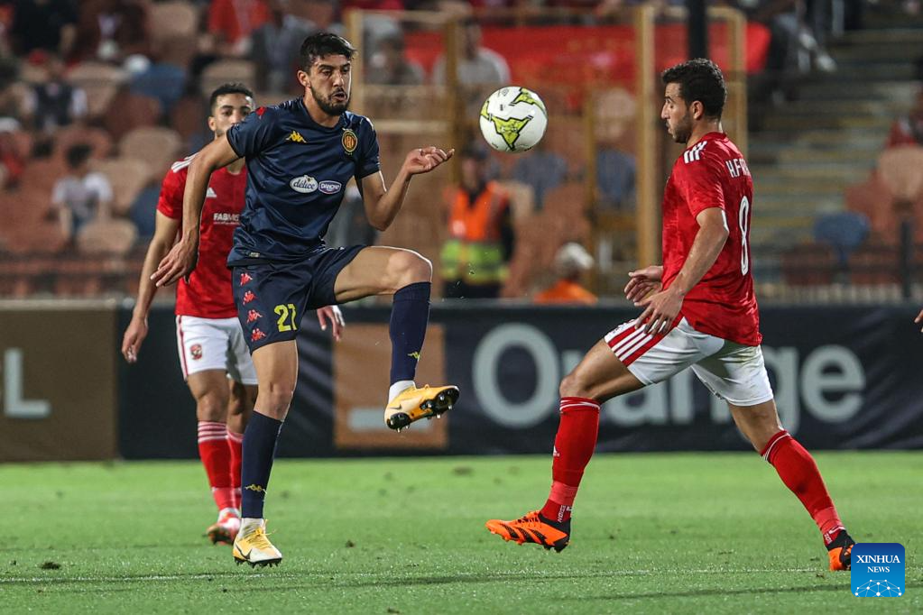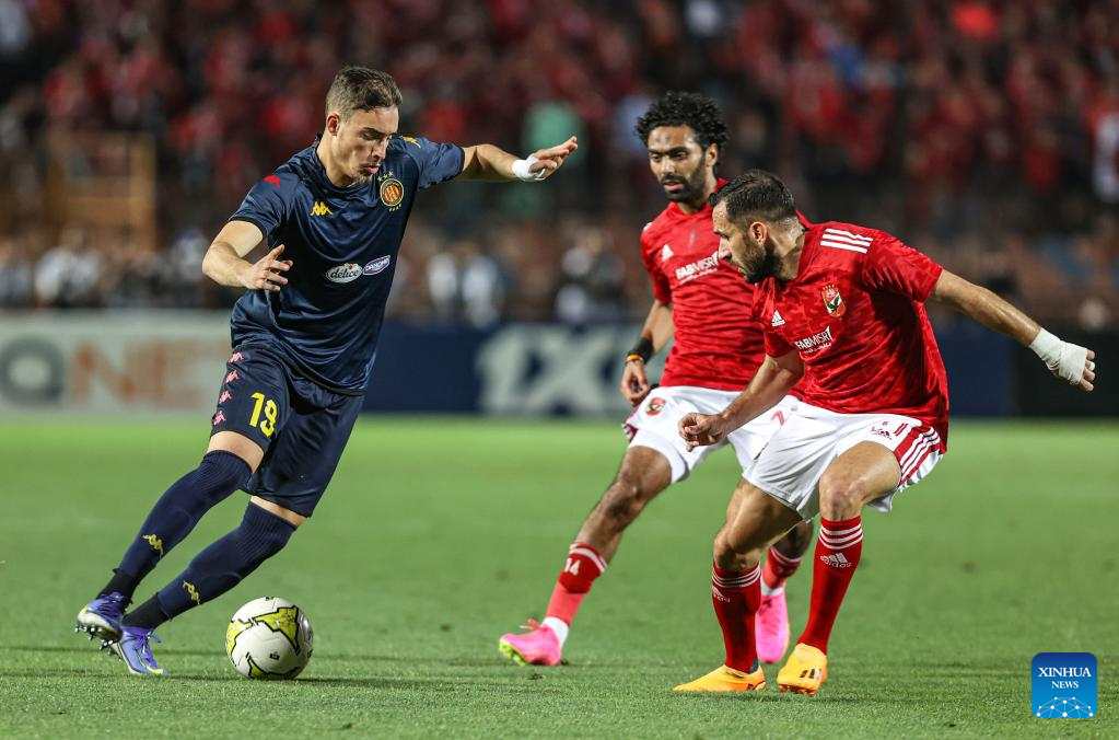 Mohamed Ali Hamouda (C) of ES Tunis competes during a Confederation of African Football (CAF) Champions League semi-final match between Al Ahly of Egypt and ES Tunis of Tunisia in Cairo, Egypt, May 19, 2023. (Xinhua/Ahmed Gomaa)