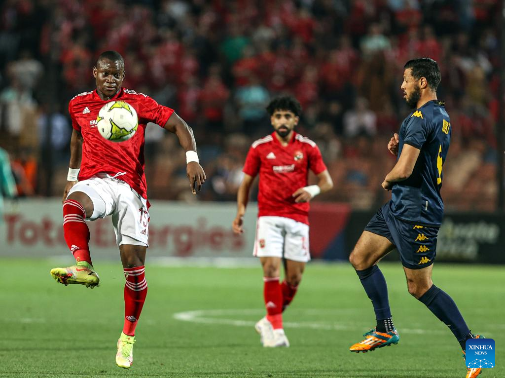 Aliou Dieng (L) of Al Ahly competes during a Confederation of African Football (CAF) Champions League semi-final match between Al Ahly of Egypt and ES Tunis of Tunisia in Cairo, Egypt, May 19, 2023. (Xinhua/Ahmed Gomaa)