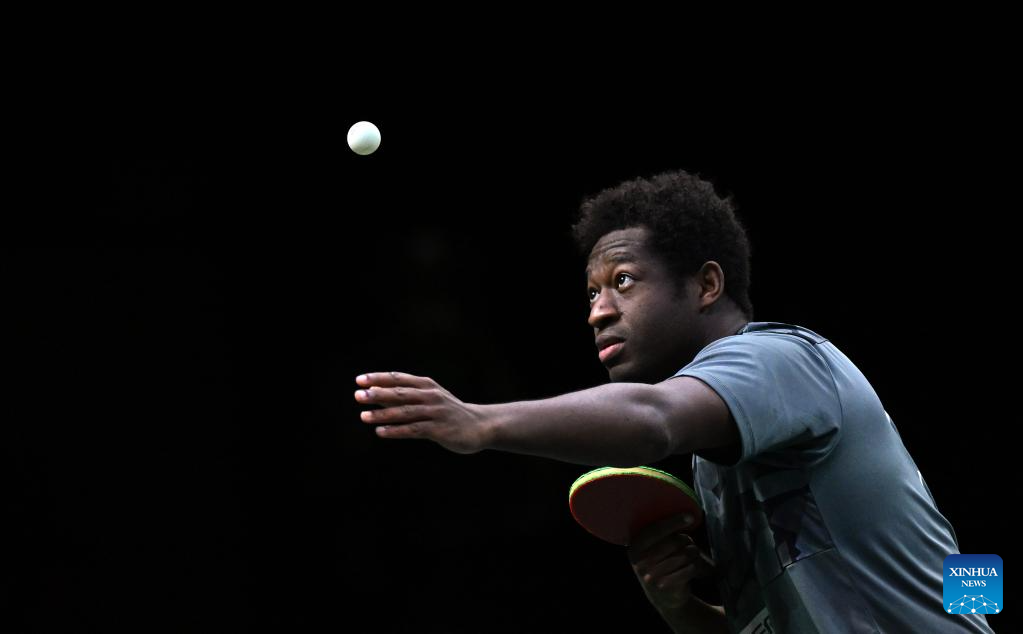 Ibrahima Diaw of Senegal serves during the first round of men's singles between Dean Levy of South Africa and Ibrahima Diaw of Senegal at 2023 ITTF Table Tennis World Championships Finals in Durban, South Africa, May 20, 2023. (Xinhua/Tao Xiyi)