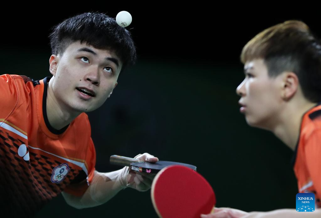 Lin Yun-Ju (L)/Chen Szu-Yu of Chinese Taipei compete during the first round of mixed doubles match between Lin Yun-Ju/Chen Szu-Yu of Chinese Taipei and Niagol Stoyanov/Giorgia Piccolin of Italy at 2023 ITTF Table Tennis World Championships Finals in Durban, South Africa, May 20, 2023. (Xinhua/Wang Dongzhen)