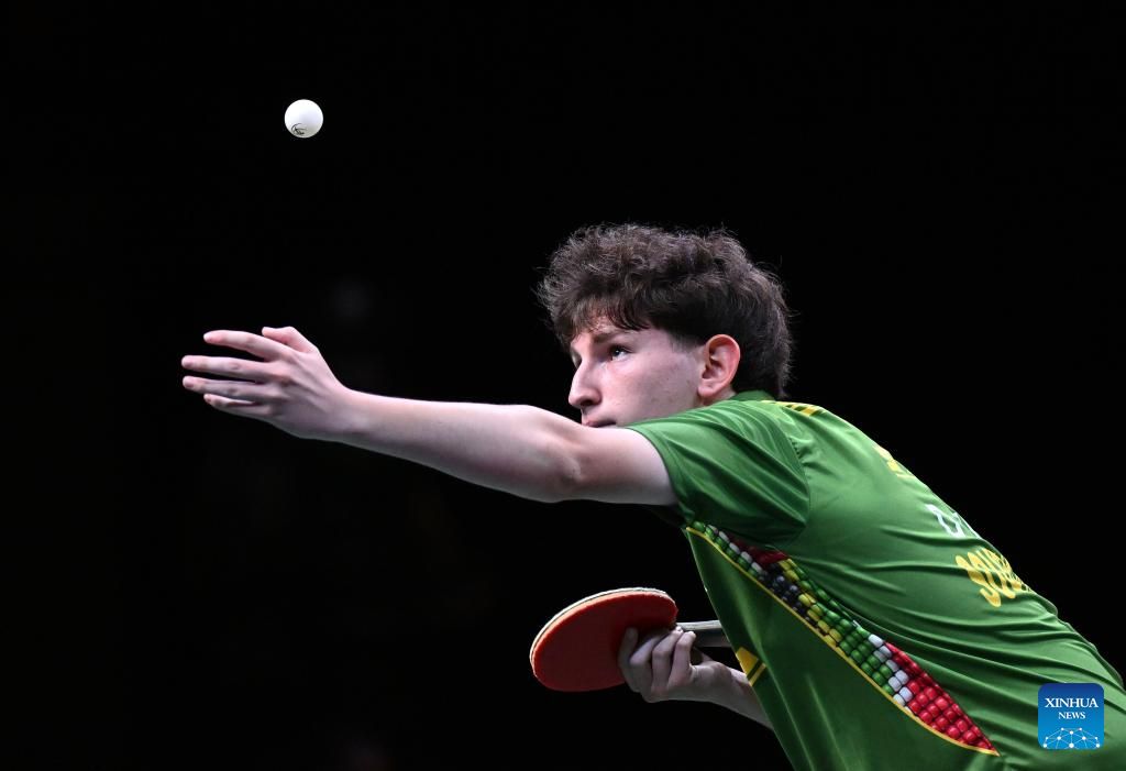 Dean Levy of South Africa serves during the first round of men's singles between Dean Levy of South Africa and Ibrahima Diaw of Senegal at 2023 ITTF Table Tennis World Championships Finals in Durban, South Africa, May 20, 2023. (Xinhua/Tao Xiyi)