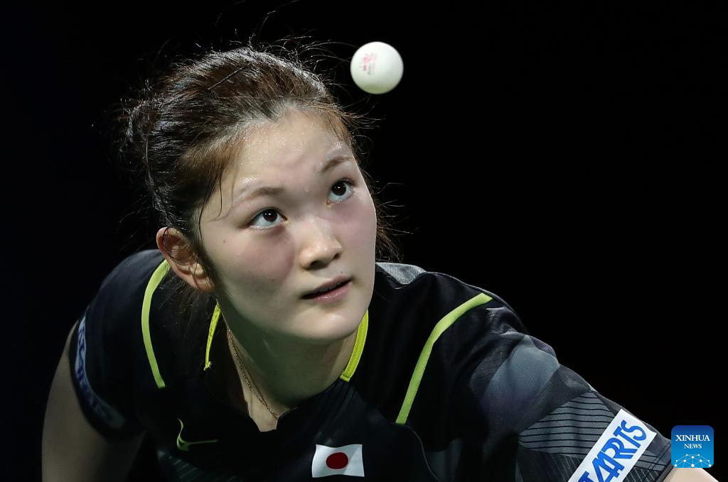 Kihara Miyuu of Japan serves against Yadira Silva of Mexico during the women's singles 1st round match at 2023 ITTF Table Tennis World Championships Finals in Durban, South Africa, May 20, 2023. (Xinhua/Wang Dongzhen)