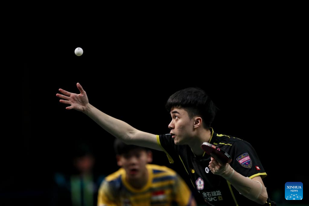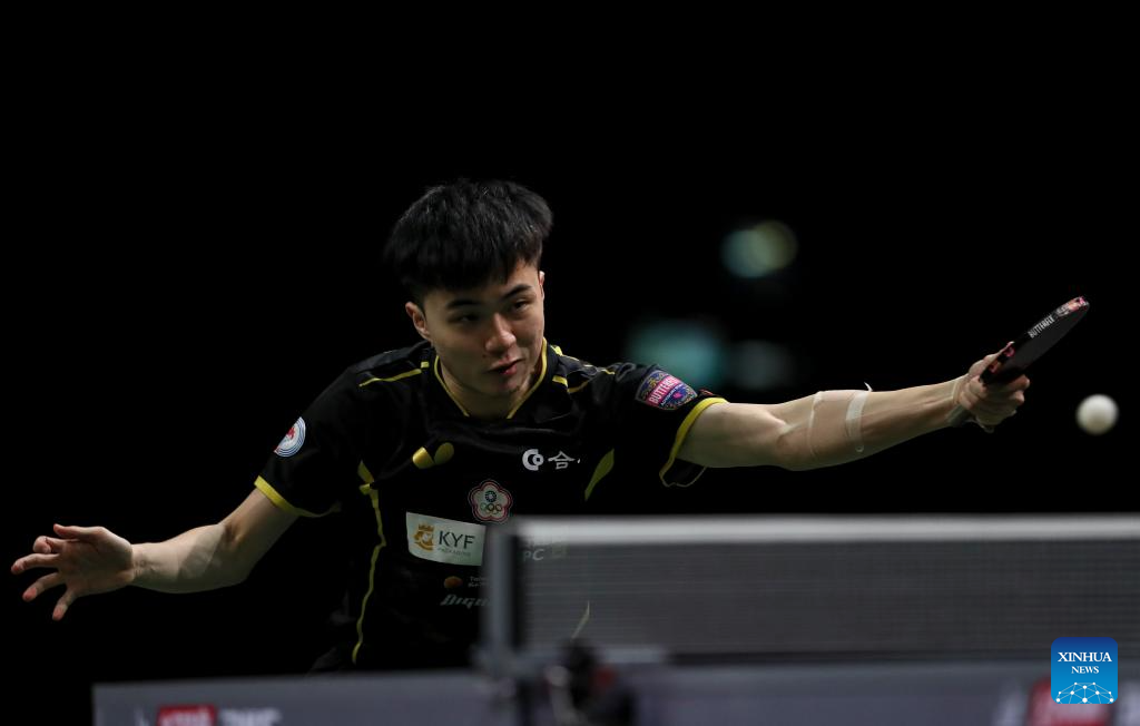 Lin Yun-Ju of Chinese Taipei hits a return during the first round of men's singles between Lin Yun-Ju of Chinese Taipei and Izaac Quek of Singapore at 2023 ITTF Table Tennis World Championships Finals in Durban, South Africa, May 21, 2023. (Xinhua/Zhang Yudong)