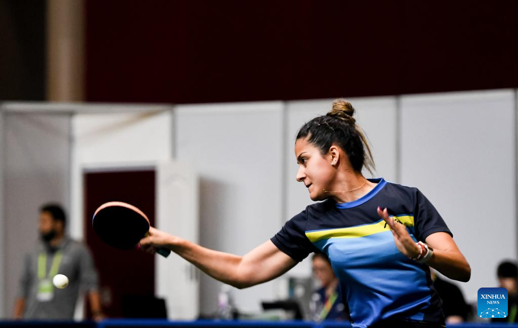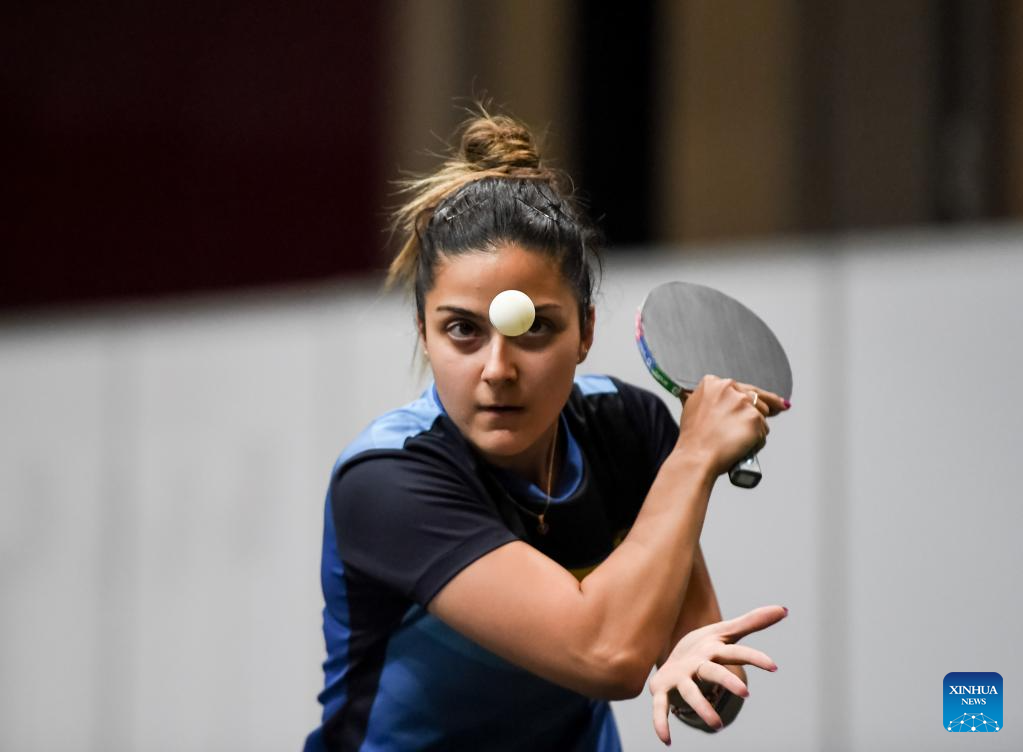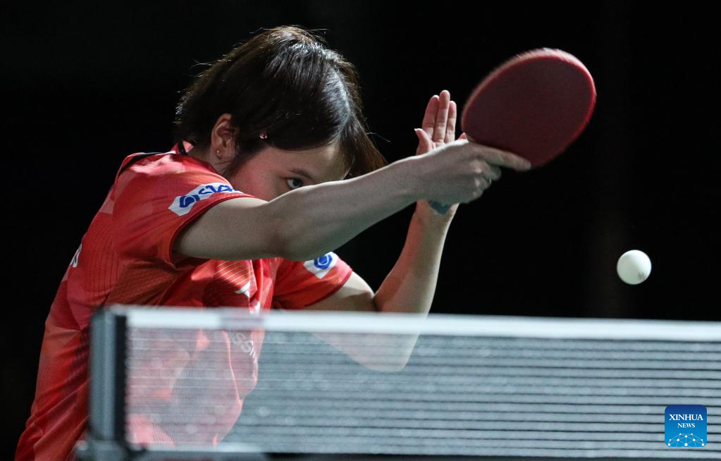 Daniela Ortega of Chile competes during the women's singles first round match between Shan Xiaona of Germany and Daniela Ortega of Chile at 2023 ITTF Table Tennis World Championships Finals in Durban, South Africa, May 21, 2023. (Xinhua/Li Yahui)