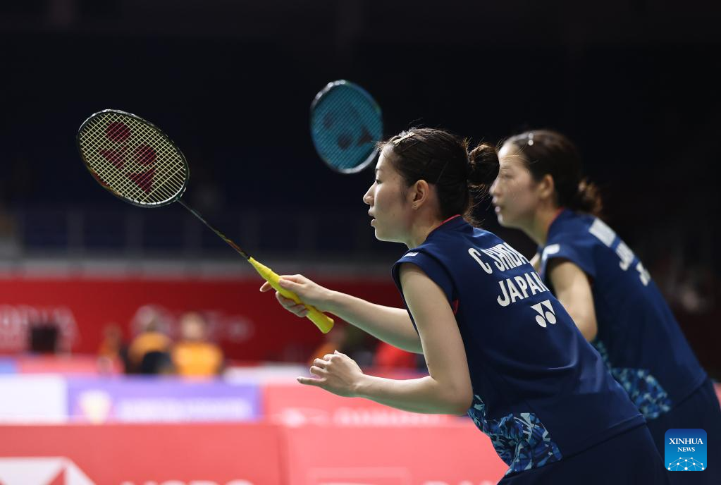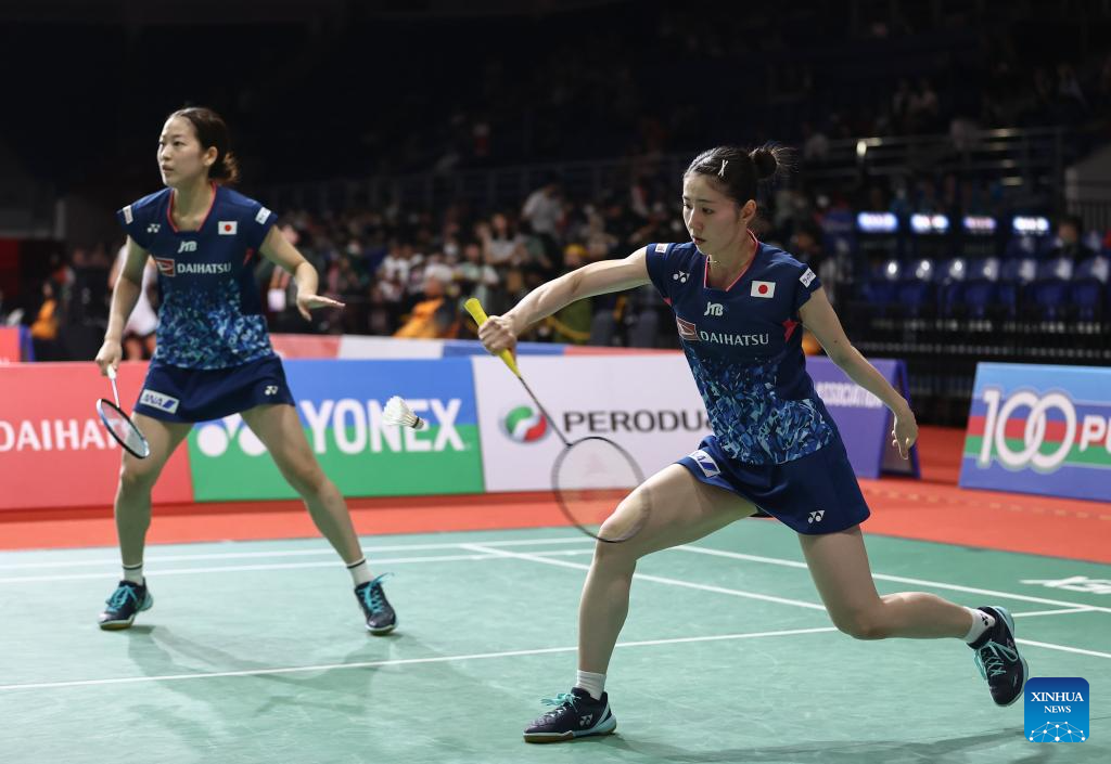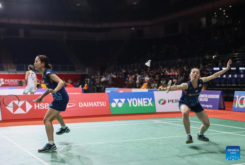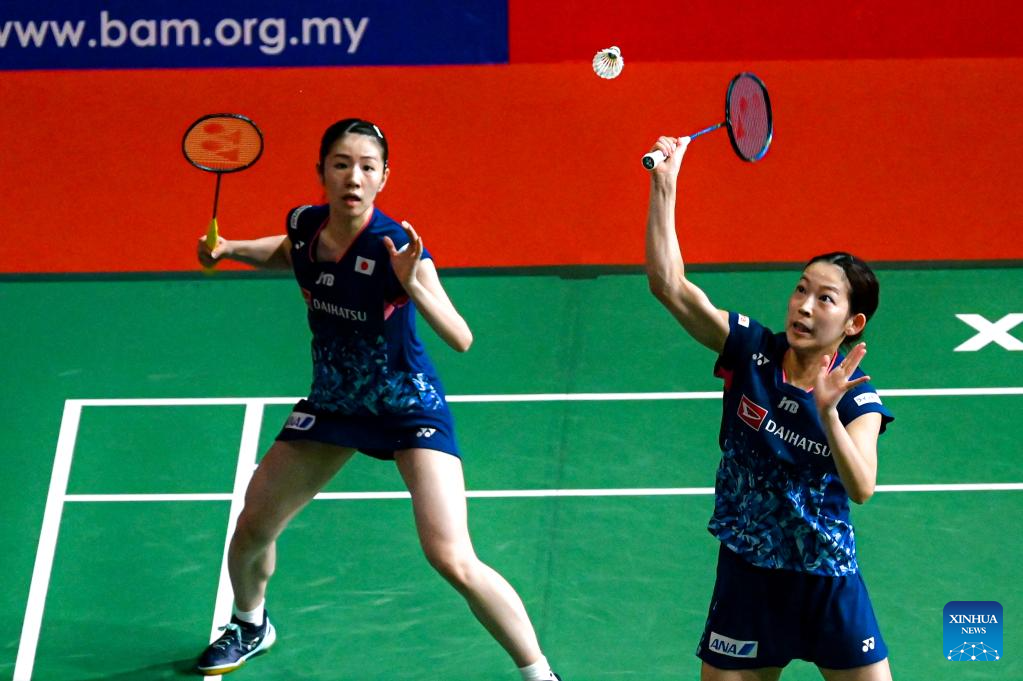 Matsuyama Nami (R)/Shida Chiharu of Japan compete during the women's doubles round of 32 match against Stine Kuespert/Emma Moszczynski of Germany at Malaysia Masters 2023 in Kuala Lumpur, Malaysia, May 24, 2023. (Photo by Gan Chuan Choon/Xinhua)