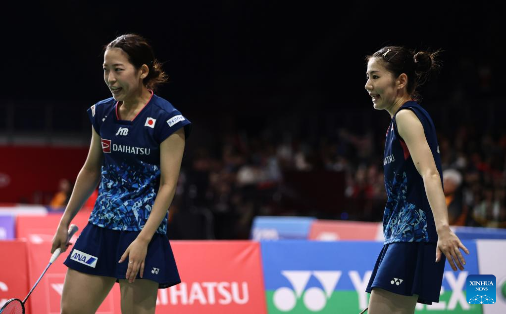 Matsuyama Nami/Shida Chiharu (L) of Japan compete during the women's doubles round of 32 match against Stine Kuespert/Emma Moszczynski of Germany at Malaysia Masters 2023 in Kuala Lumpur, Malaysia, May 24, 2023. (Photo by Wong Fok Loy/Xinhua)