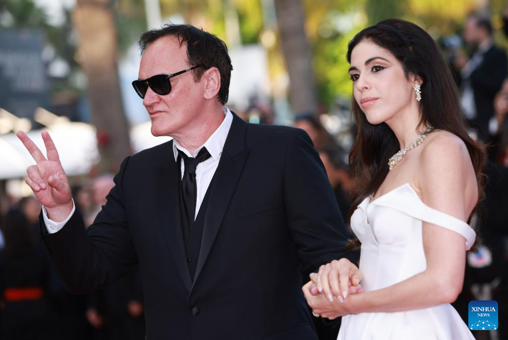 U.S. director Quentin Tarantino (L) arrives for the closing ceremony of the 76th edition of the Cannes Film Festival in Cannes, southern France, May 27, 2023. (Xinhua/Gao Jing)