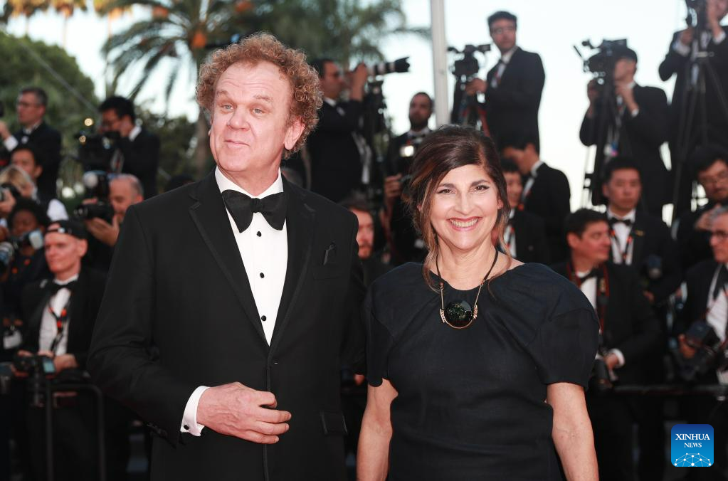 U.S. actor and President of the Un Certain Regard jury John C. Reilly (L) arrives for the closing ceremony of the 76th edition of the Cannes Film Festival in Cannes, southern France, May 27, 2023. (Xinhua/Gao Jing)
