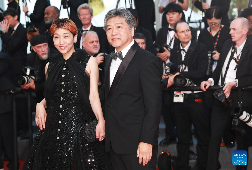 Japanese director Kore-eda Hirokazu (R) and Japanese actress Ando Sakura arrive for the closing ceremony of the 76th edition of the Cannes Film Festival in Cannes, southern France, May 27, 2023. (Xinhua/Gao Jing)