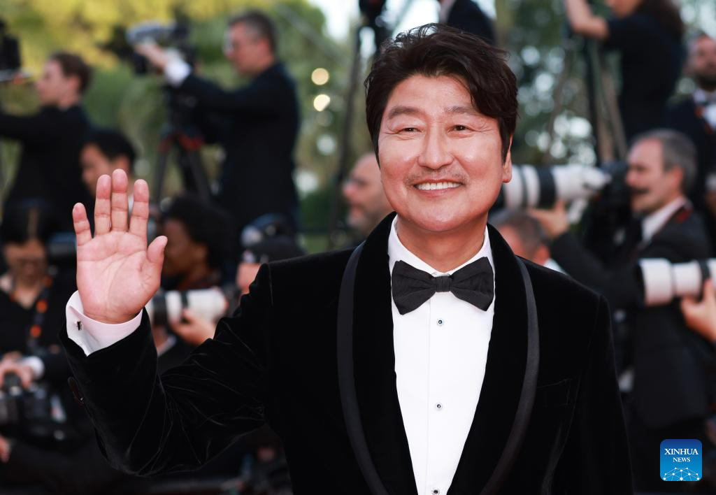 South Korean actor Song Kang-ho arrives for the closing ceremony of the 76th edition of the Cannes Film Festival in Cannes, southern France, May 27, 2023. (Xinhua/Gao Jing)