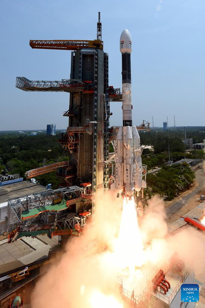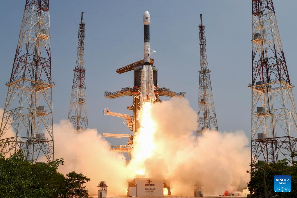 The second-generation navigation satellite NVS-01 is launched on board an expendable Geosynchronous Satellite Launch Vehicle rocket from Satish Dhawan Space Center in Sriharikota, Andhra Pradesh state, India, on May 29, 2023. The Indian Space Research Organization (ISRO) on Monday successfully launched a second-generation navigation satellite NVS-01, officials said. (UNI via Xinhua)