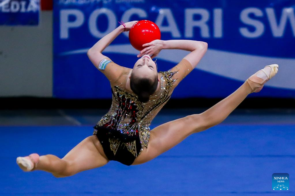Kita Mirano of Japan competes in the ball event of senior's all-around final at the 14th Senior and 19th Junior Rhythmic Gymnastics Asian Championships in Manila, the Philippines on June 2, 2023. (Xinhua/Rouelle Umali)