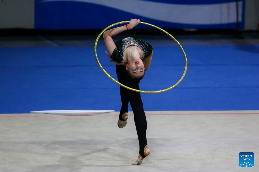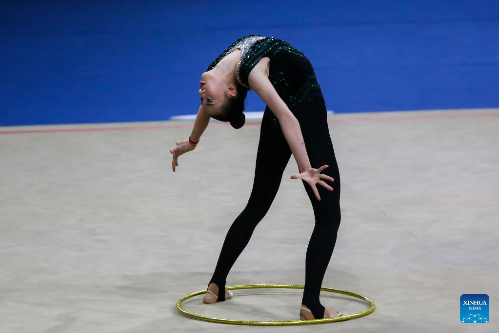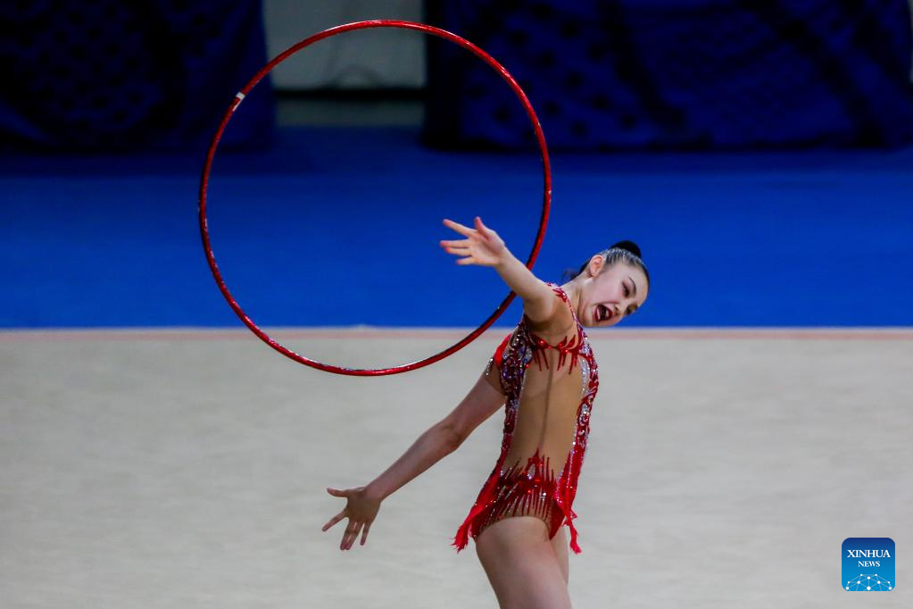 Yosmina Rakhimova of Uzbekistan competes in the hoop event of senior's all-around final at the 14th Senior and 19th Junior Rhythmic Gymnastics Asian Championships in Manila, the Philippines on June 2, 2023. (Xinhua/Rouelle Umali)