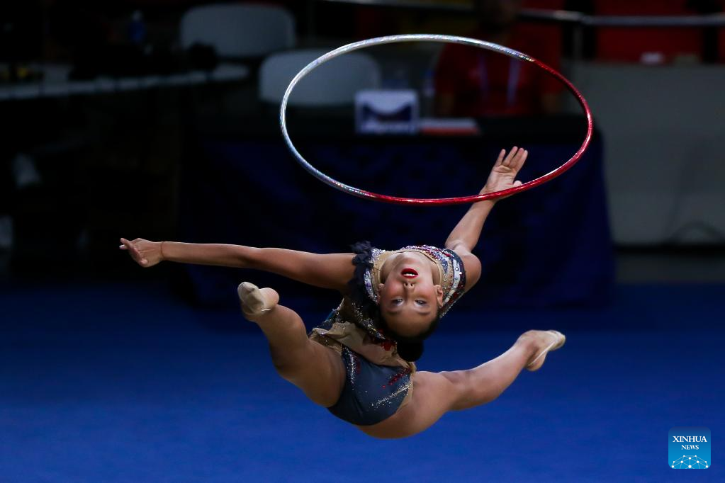 Breanna Labadan of the Philippines competes in the hoop event of senior's all-around final at the 14th Senior and 19th Junior Rhythmic Gymnastics Asian Championships in Manila, the Philippines on June 2, 2023. (Xinhua/Rouelle Umali)