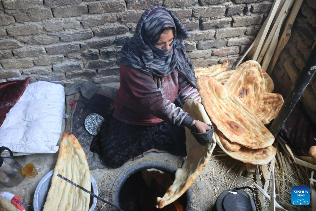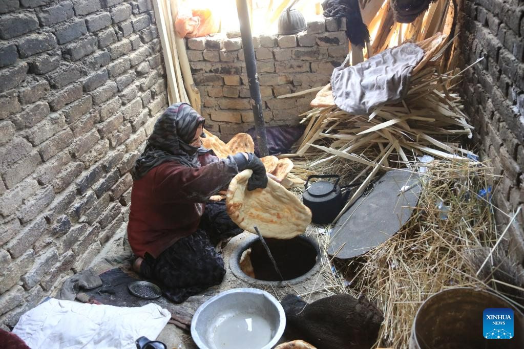 A woman bakes naan, Afghan traditional flatbread, in Kabul, Afghanistan, June 4, 2023. (Photo by Saifurahman Safi/Xinhua)