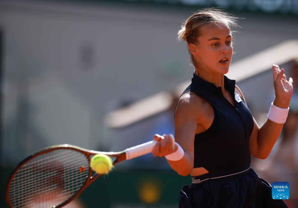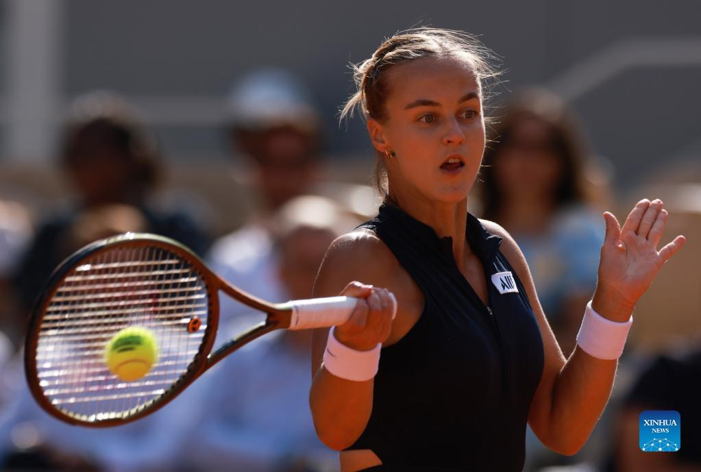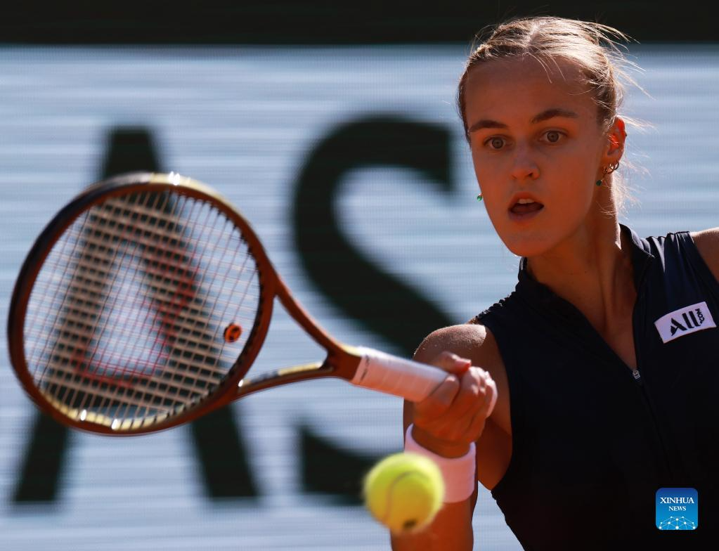 Anna Karolina Schmiedlova of Slovakia competes during the women's singles fourth round match between Coco Gauff of the United States and Anna Karolina Schmiedlova of Slovakia at the French Open tennis tournament at Roland Garros in Paris, France, on June 5, 2023. (Xinhua/Gao Jing)