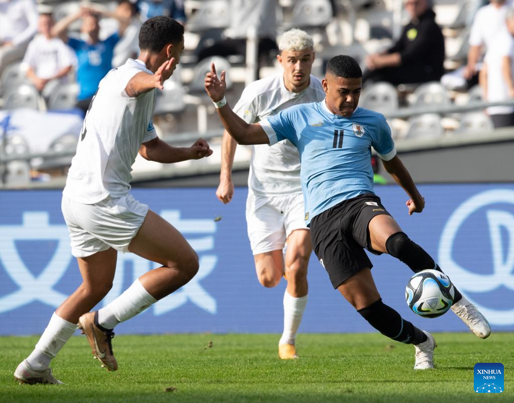 Anderson Duarte of Uruguay (2nd L) scores during the FIFA U20 World Cup semifinal match between Uruguay and Israel in La Plata, Argentina, June 8, 2023. (Xinhua/Wang Tiancong)