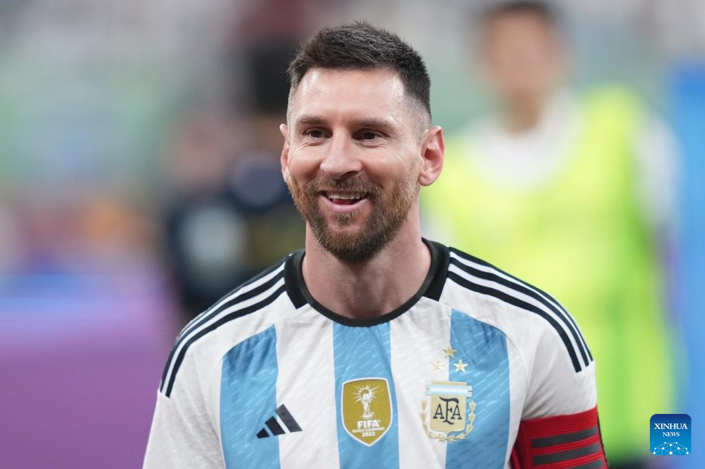 Players of Argentina celebrate the goal of Lionel Messi during an international football invitational between Argentina and Australia in Beijing, capital of China, June 15, 2023. (Xinhua/Jia Haocheng)