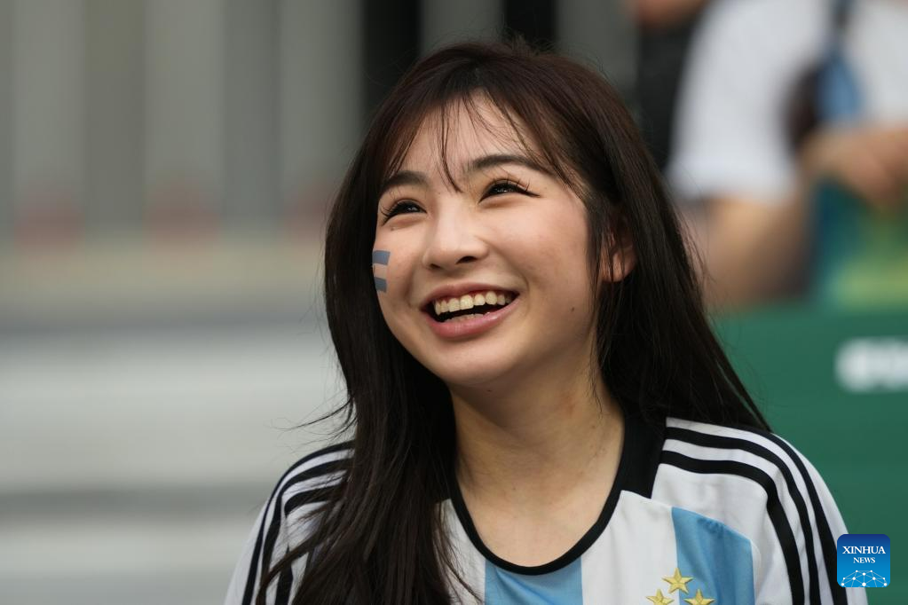Fans are seen ahead of an international football invitational between Argentina and Australia in Beijing, capital of China, June 15, 2023. (Xinhua/Zhang Chen)