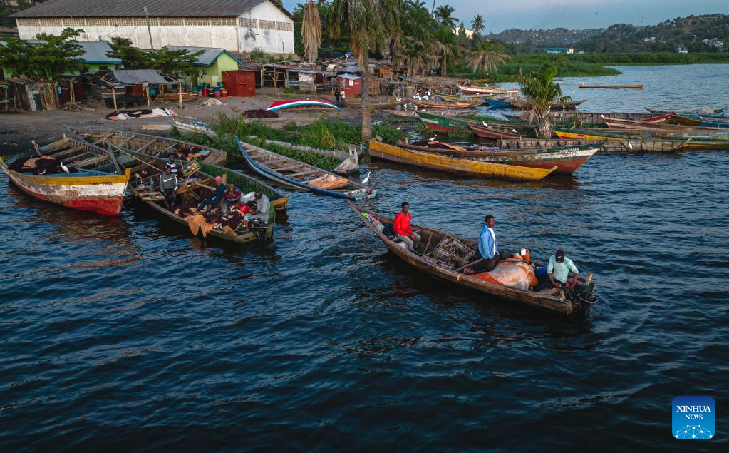 This photo taken on June 11, 2023 shows fishing boats in Lake Victoria in Mwanza region, Tanzania. Lake Victoria, located in the Great Rift Valley of East Africa, is the largest freshwater lake in Africa and the second largest freshwater lake in the world. Fishery is the main industry in the lake area, with an annual output value of 600 million U.S. dollars. It is an essential source of food and income for the residents along the lake. (Xinhua/Wang Guansen)