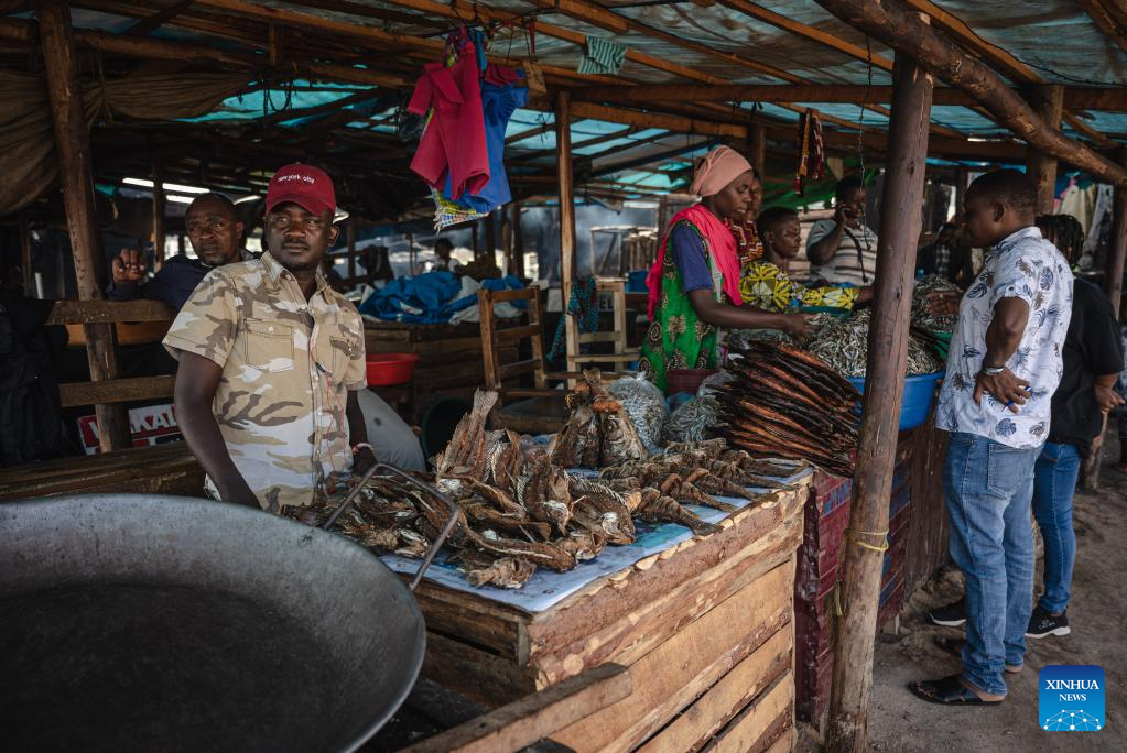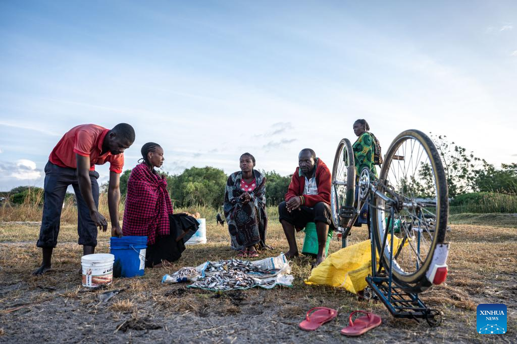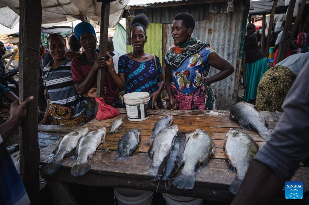 Villagers sell fish on the shore of Lake Victoria in Mwanza region, Tanzania on June 11, 2023. Lake Victoria, located in the Great Rift Valley of East Africa, is the largest freshwater lake in Africa and the second largest freshwater lake in the world. Fishery is the main industry in the lake area, with an annual output value of 600 million U.S. dollars. It is an essential source of food and income for the residents along the lake. (Xinhua/Wang Guansen)