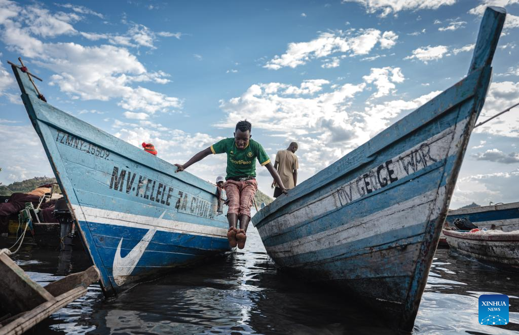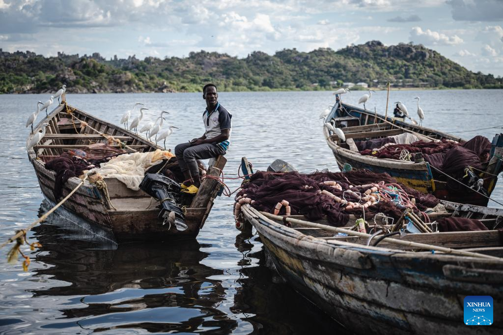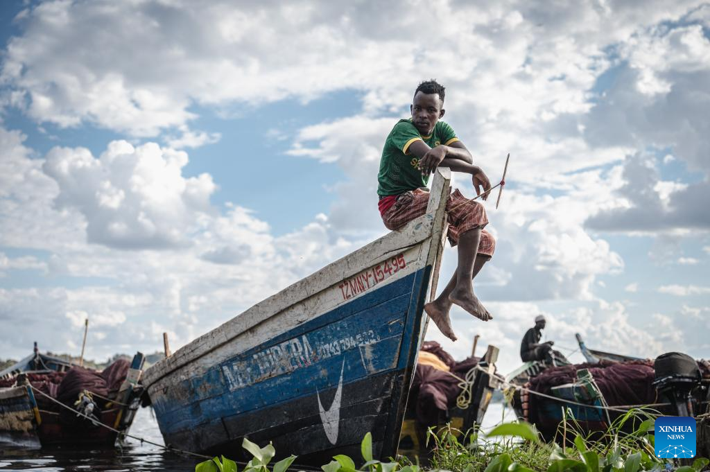 A fisherman sists on a fishing boat on the shore of Lake Victoria in Mwanza region, Tanzania on June 10, 2023. Lake Victoria, located in the Great Rift Valley of East Africa, is the largest freshwater lake in Africa and the second largest freshwater lake in the world. Fishery is the main industry in the lake area, with an annual output value of 600 million U.S. dollars. It is an essential source of food and income for the residents along the lake. (Xinhua/Wang Guansen)