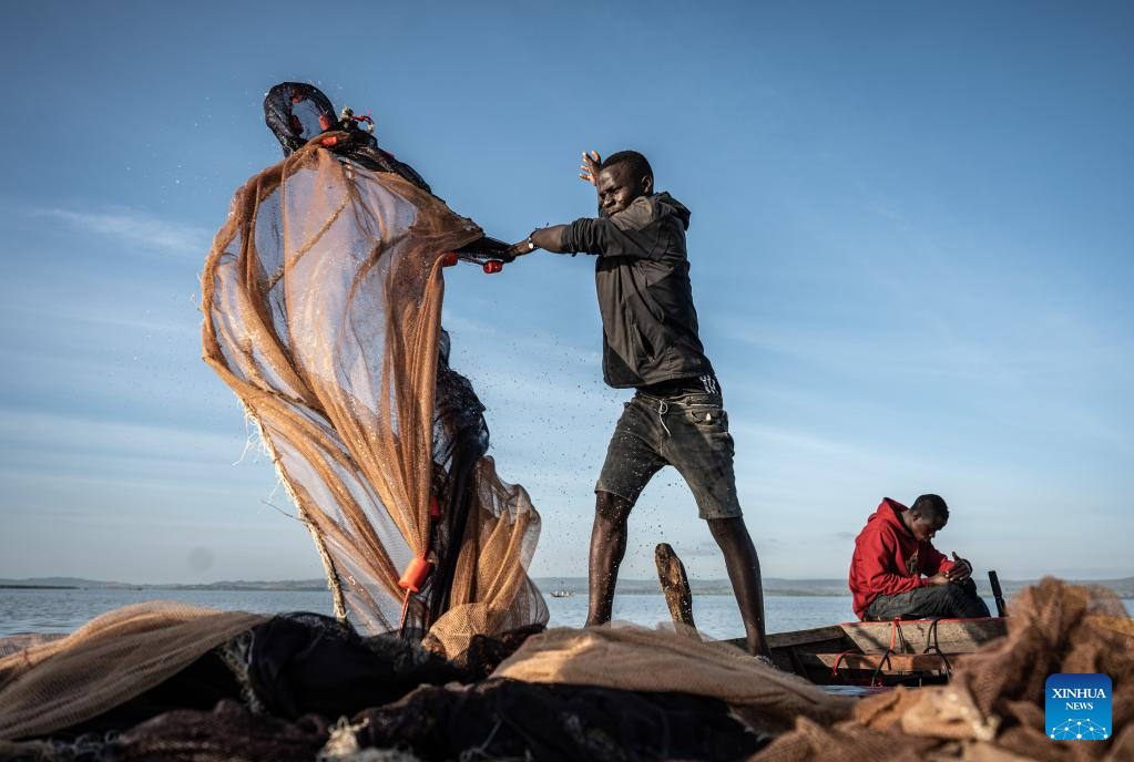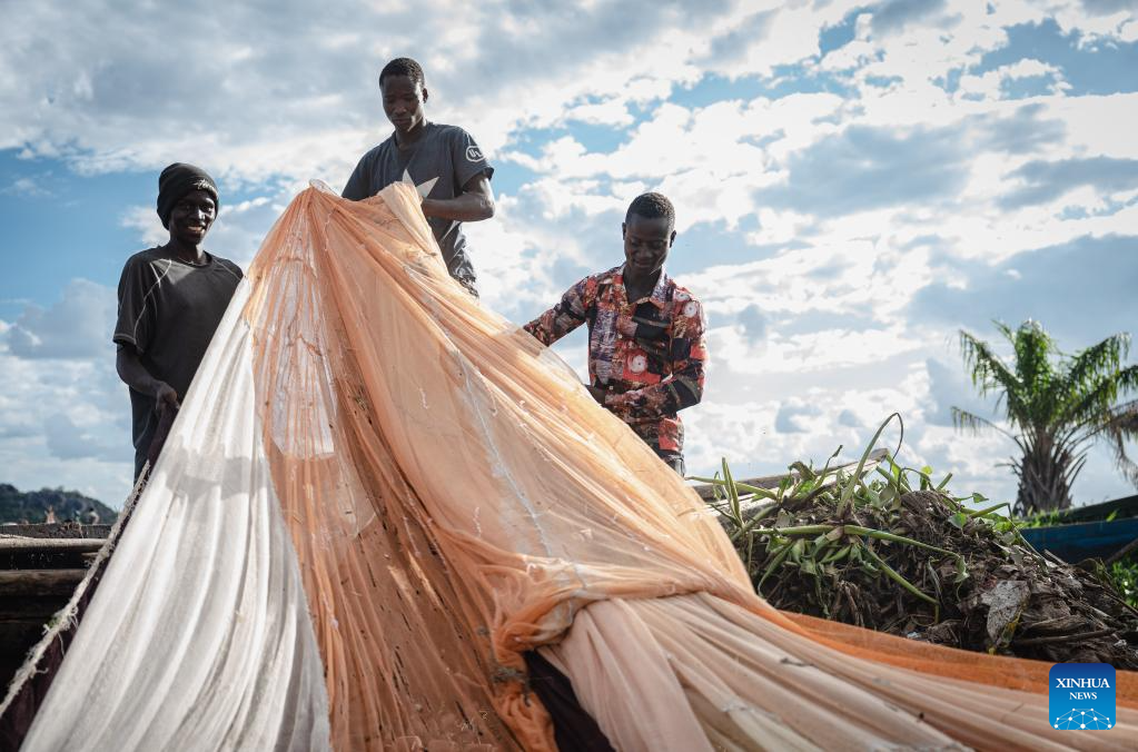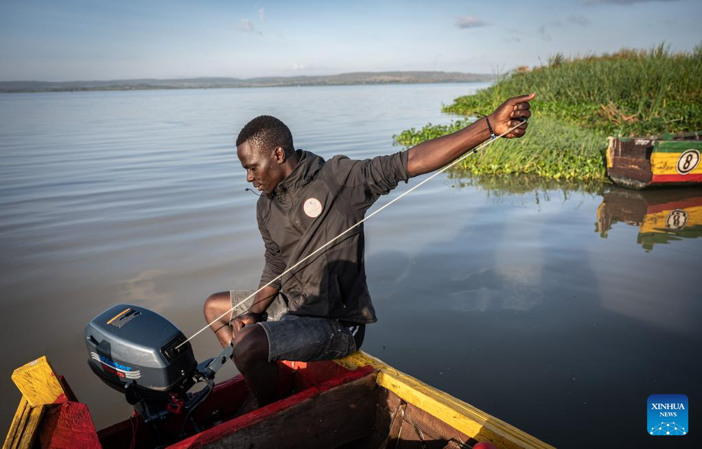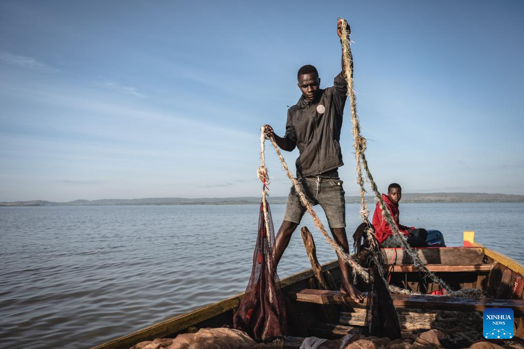 A fisherman prepares for fishing in Lake Victoria in Mwanza region, Tanzania on June 10, 2023. Lake Victoria, located in the Great Rift Valley of East Africa, is the largest freshwater lake in Africa and the second largest freshwater lake in the world. Fishery is the main industry in the lake area, with an annual output value of 600 million U.S. dollars. It is an essential source of food and income for the residents along the lake. (Xinhua/Wang Guansen)