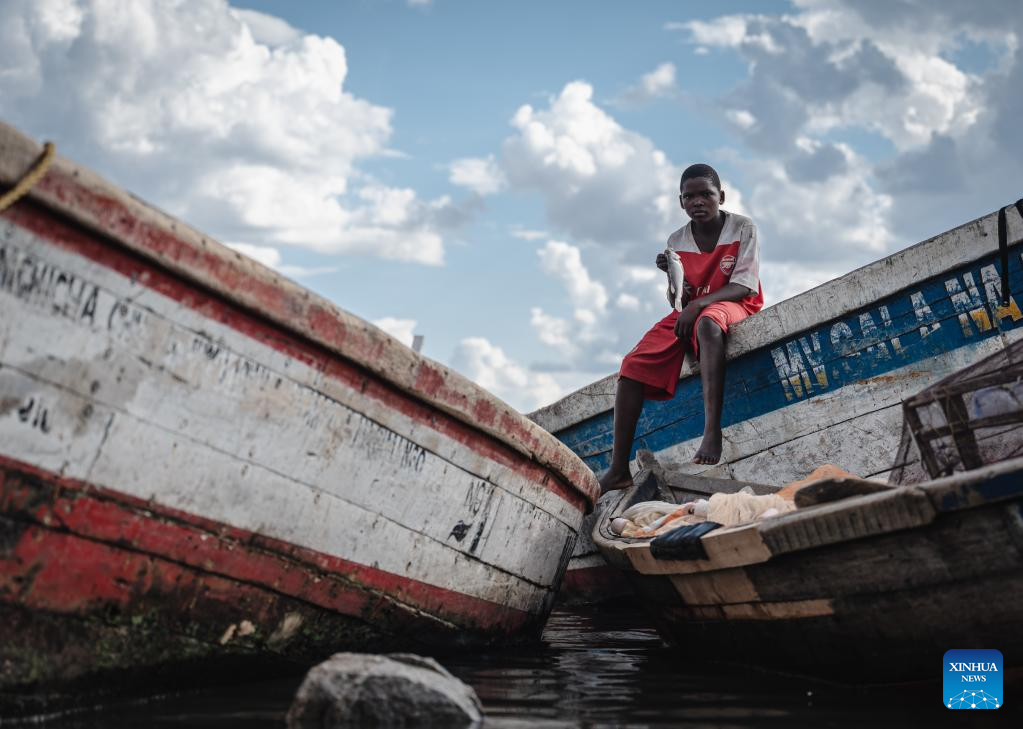 A young fisherman shows a fish on the shore of Lake Victoria in Mwanza region, Tanzania on June 10, 2023. Lake Victoria, located in the Great Rift Valley of East Africa, is the largest freshwater lake in Africa and the second largest freshwater lake in the world. Fishery is the main industry in the lake area, with an annual output value of 600 million U.S. dollars. It is an essential source of food and income for the residents along the lake. (Xinhua/Wang Guansen)