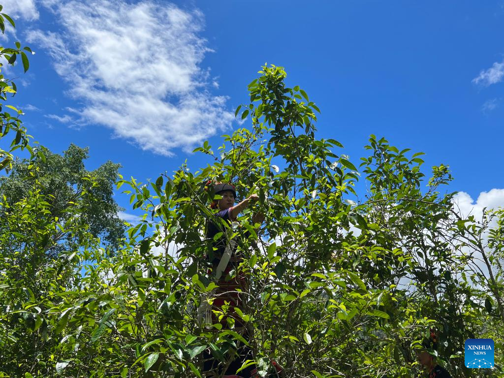 KUNMING, June 15 (Xinhua) -- Though spring, the peak time of year for tea harvesting, has passed, farmer Yan Yanjiao finds himself still busy, powering his SUV along narrow dirt roads leading to tea gardens on mountain slopes.