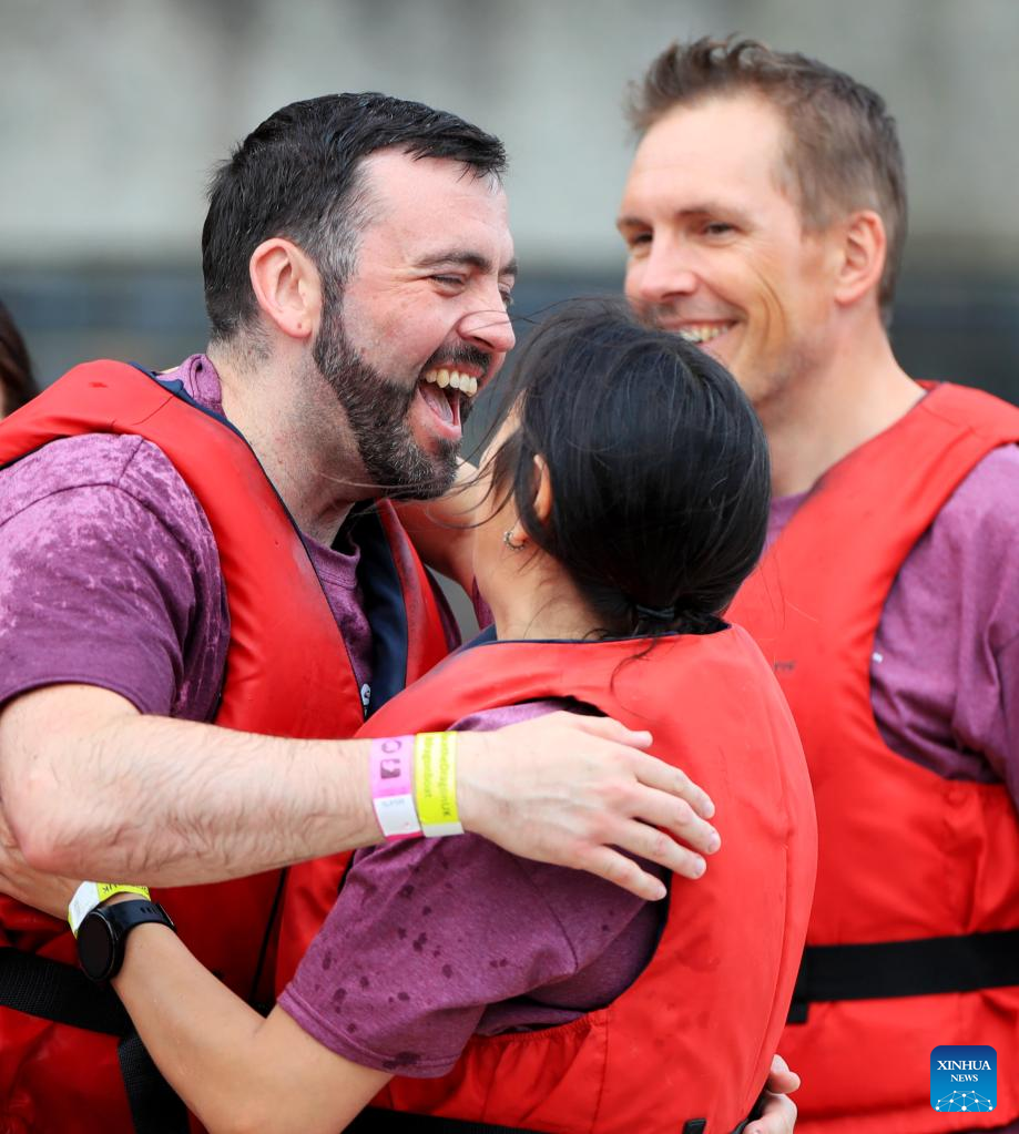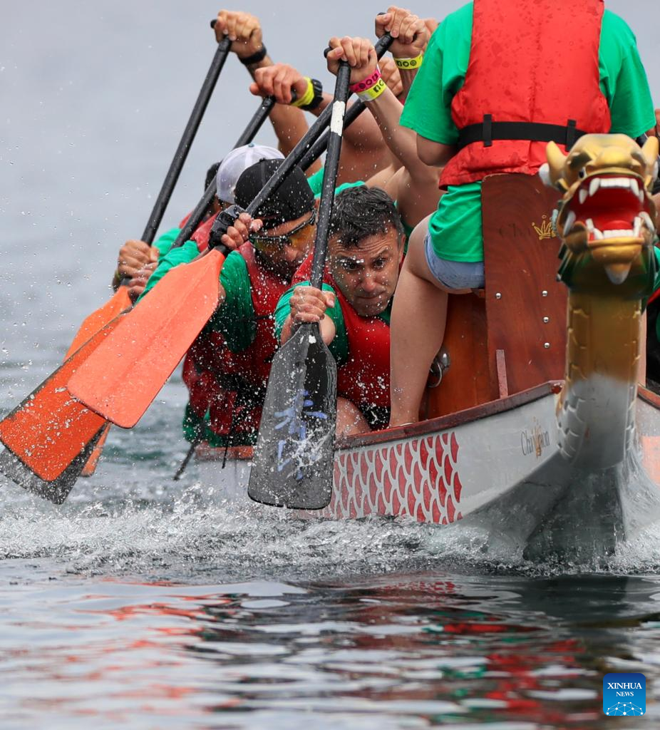 MANCHESTER, Britain, June 17 (Xinhua) -- The moment the starting signal rang out at Salford Quays in Greater Manchester on Saturday, three dragon boats swiftly surged forward, with paddlers unleashing powerful strokes in sync with the pulsating beats set by drummers at the front of the boats.