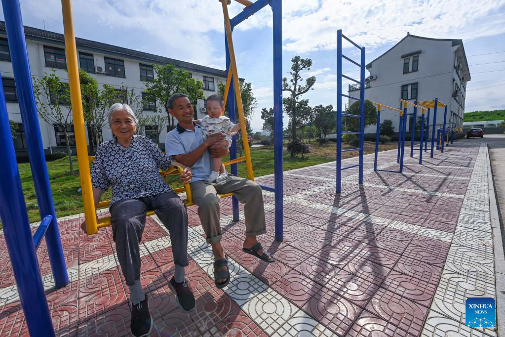 Residents enjoy themselves in their community in Huayuan Village of Nanma Town, Dongyang City, east China's Zhejiang Province, June 19, 2023.