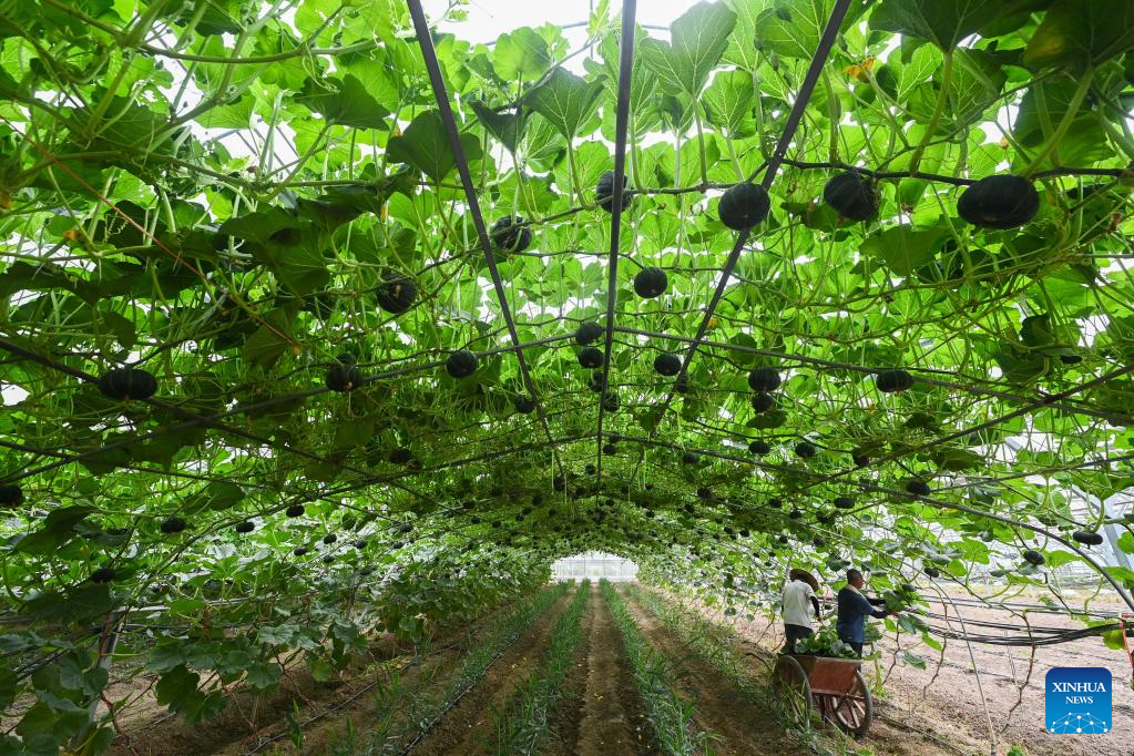 Farmers harvest pumpkins at an agricultural ecological park in Huayuan Village of Nanma Town, Dongyang City, east China's Zhejiang Province, June 19, 2023.