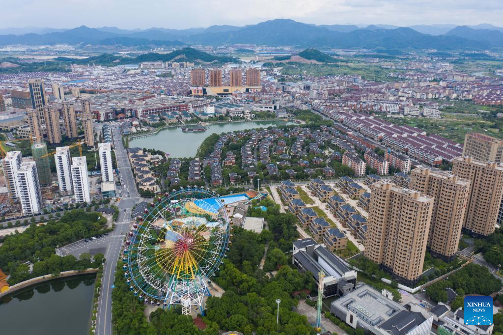 This aerial photo taken on June 19, 2023 shows a view of Huayuan Village of Nanma Town in Dongyang City, east China's Zhejiang Province.