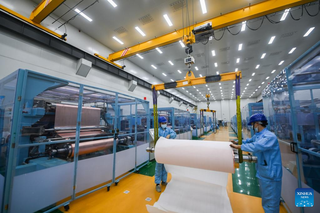 Employees work at a workshop of a new energy company in Huayuan Village of Nanma Town, Dongyang City, east China's Zhejiang Province, June 19, 2023.