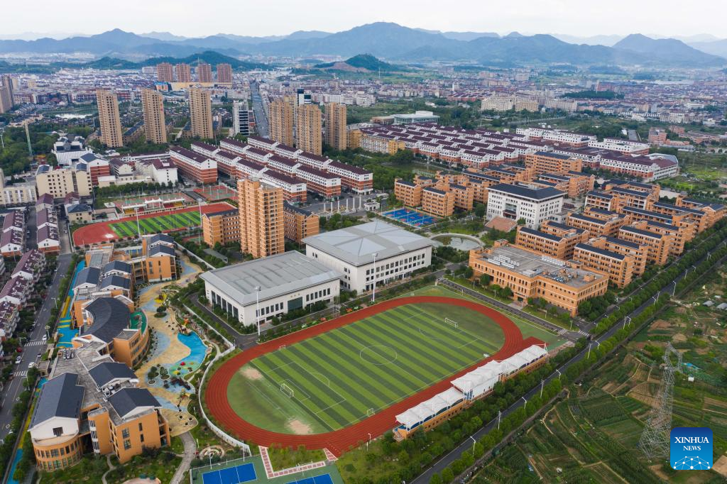 This aerial photo taken on June 19, 2023 shows a school in Huayuan Village of Nanma Town, Dongyang City, east China's Zhejiang Province.
