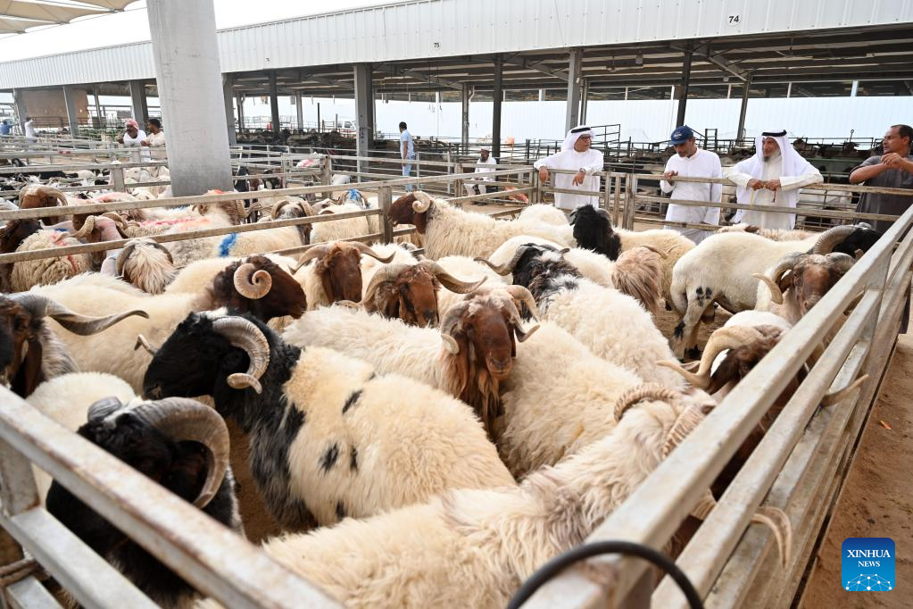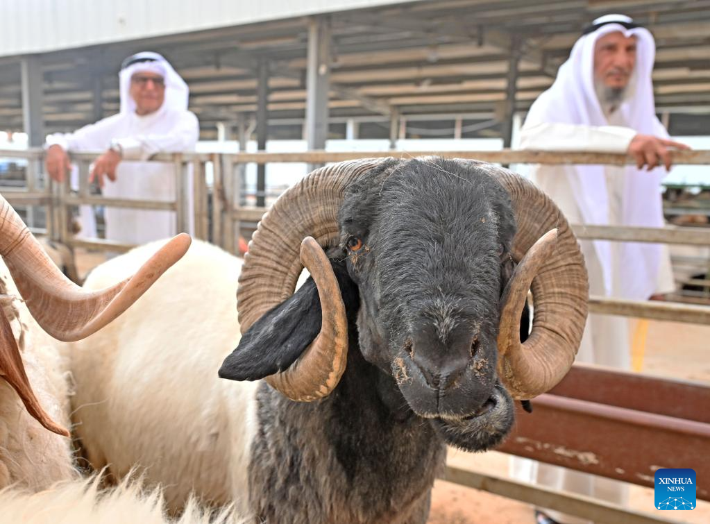 People visit a livestock market in Capital Governorate, Kuwait, June 25, 2023, before Eid Al-Adha. (Photo by Asad/Xinhua)