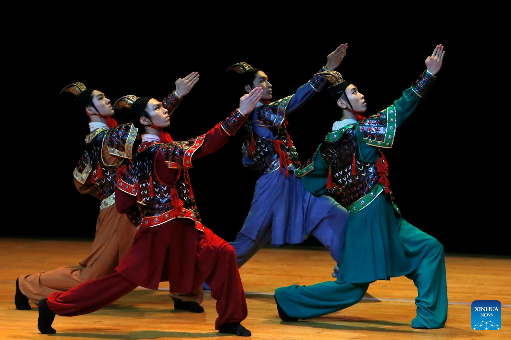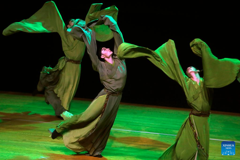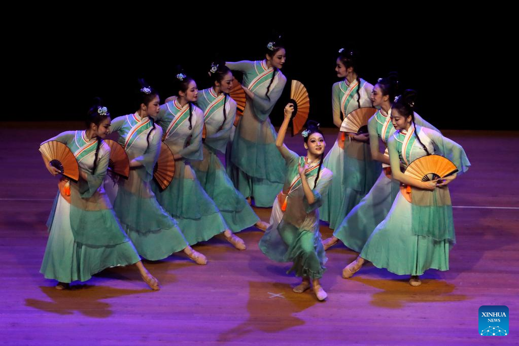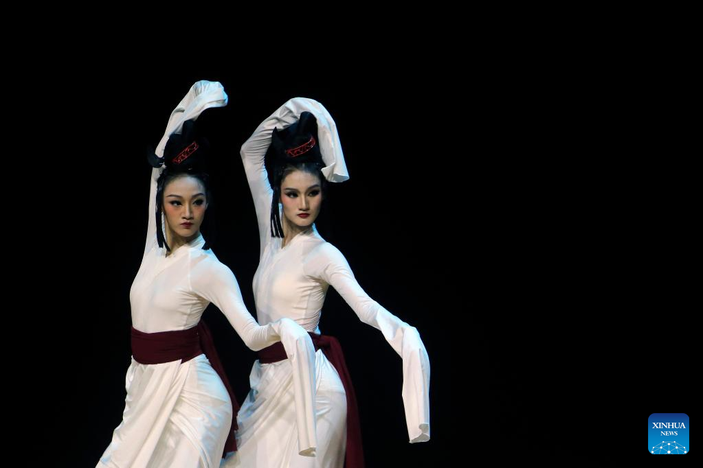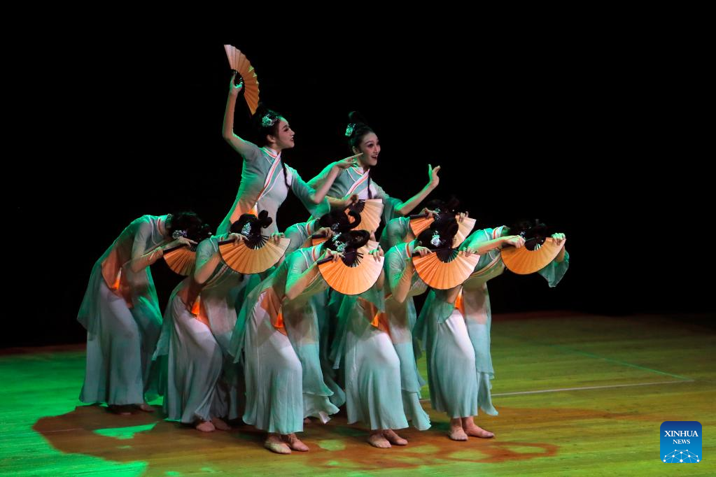 Members of Beijing Dance Academy perform in Bucharest, capital of Romania, June 25, 2023. Beijing Dance Academy has presented a classical Chinese dance show at the University Politehnica of Bucharest. (Photo by Cristian Cristel/Xinhua)
