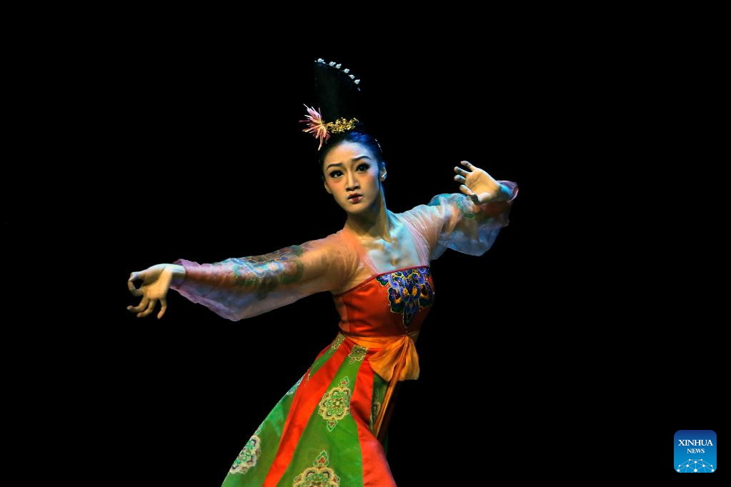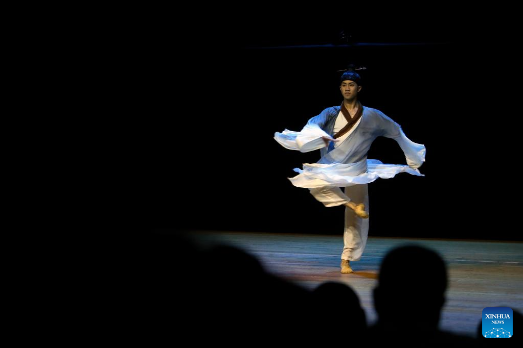 A member of Beijing Dance Academy performs in Bucharest, capital of Romania, June 25, 2023. Beijing Dance Academy has presented a classical Chinese dance show at the University Politehnica of Bucharest. (Photo by Cristian Cristel/Xinhua)