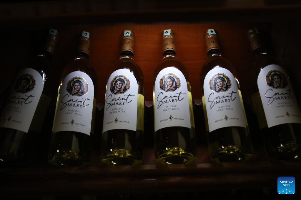 This photo taken on June 24, 2023 shows several bottles of wine produced in Dodoma, Tanzania. Tanzania, despite not having an international reputation as a wine producer, is home to the second-largest wine-producing region in sub-Saharan Africa after South Africa. (Photo by Herman Emmanuel/Xinhua)