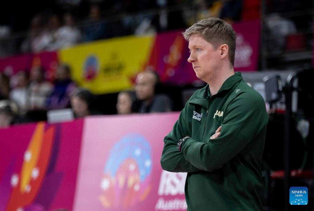 Head coach Shannon Seebohm of Australia reacts during the group B match against Japan at the 2023 FIBA Women's Asia Cup in Sydney, Australia, June 28, 2023. (Photo by Hu Jingchen/Xinhua)