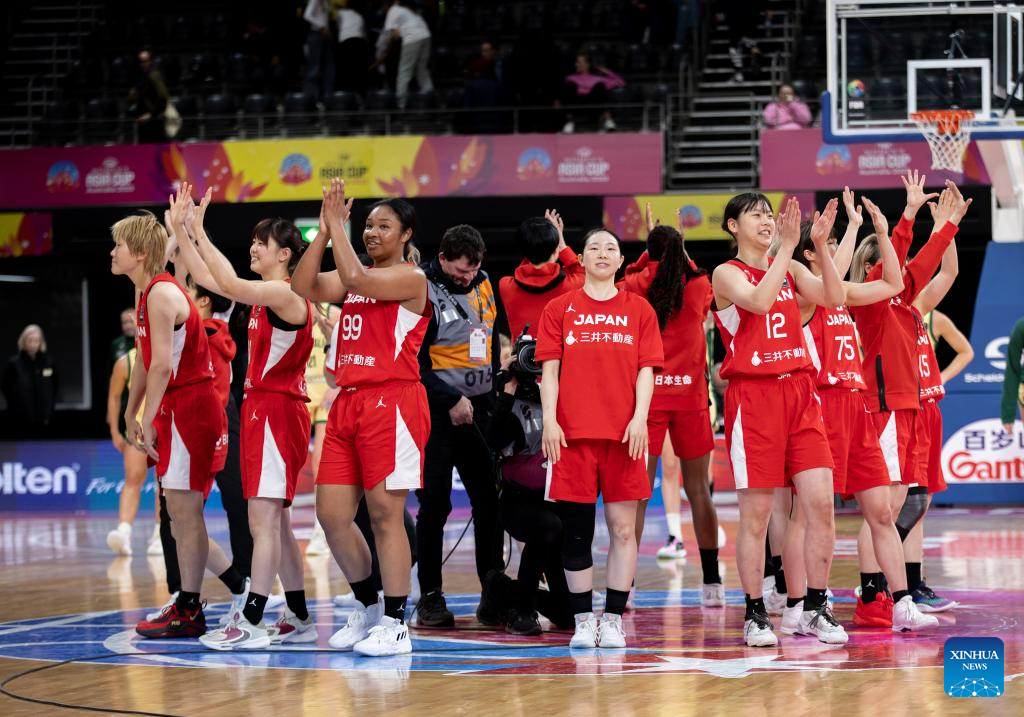 Players of Japan greet spectators after winning the group B match against Australia at the 2023 FIBA Women's Asia Cup in Sydney, Australia, June 28, 2023. (Photo by Hu Jingchen/Xinhua)