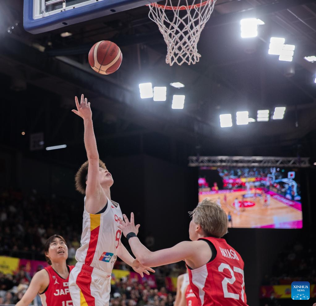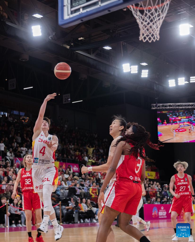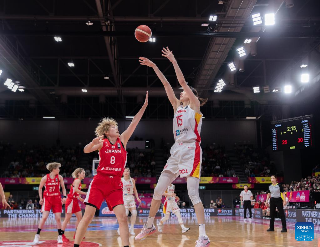 Han Xu (R) of China shoots during the final between China and Japan at the 2023 FIBA Women's Asia Cup in Sydney, Australia, July 2, 2023. (Photo by Hu Jingchen/Xinhua)