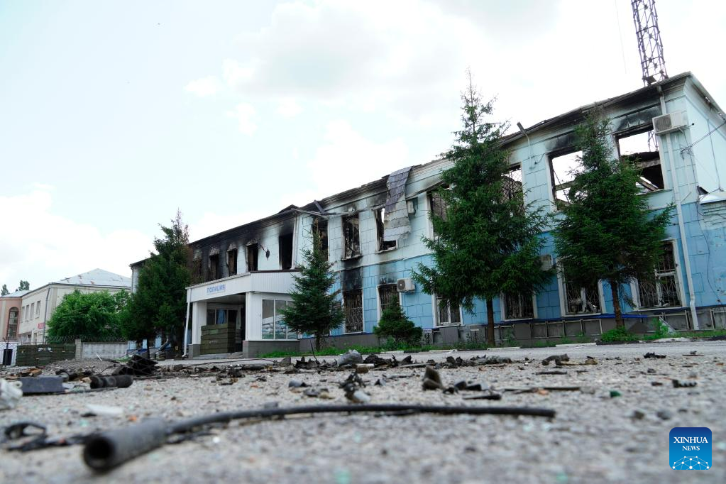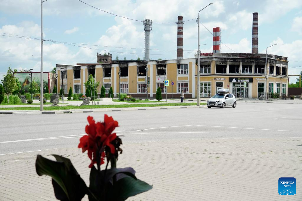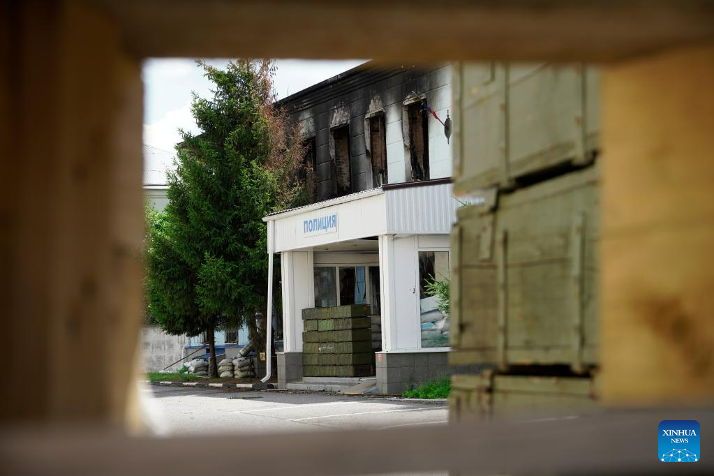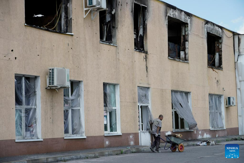 This photo taken on July 1, 2023 shows the damaged building in Shebekino of Belgorod region, Russia. (Str/Xinhua)