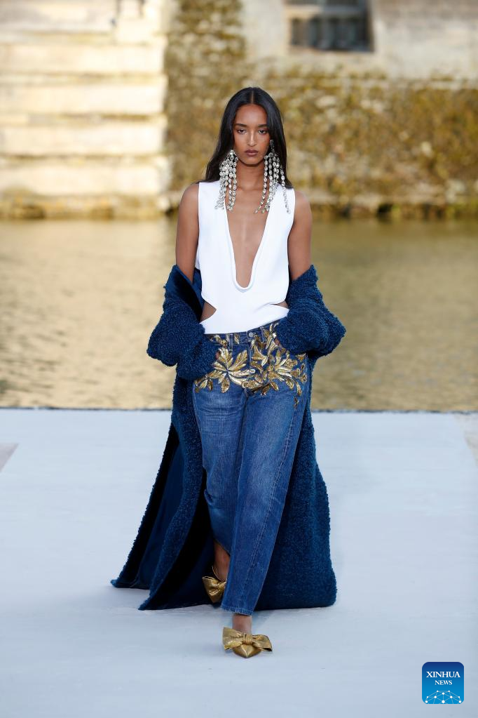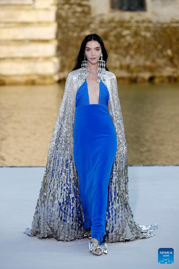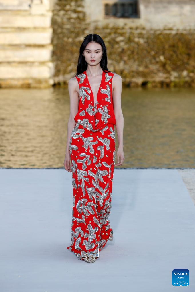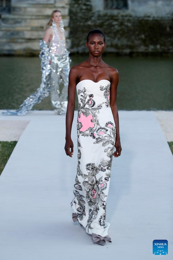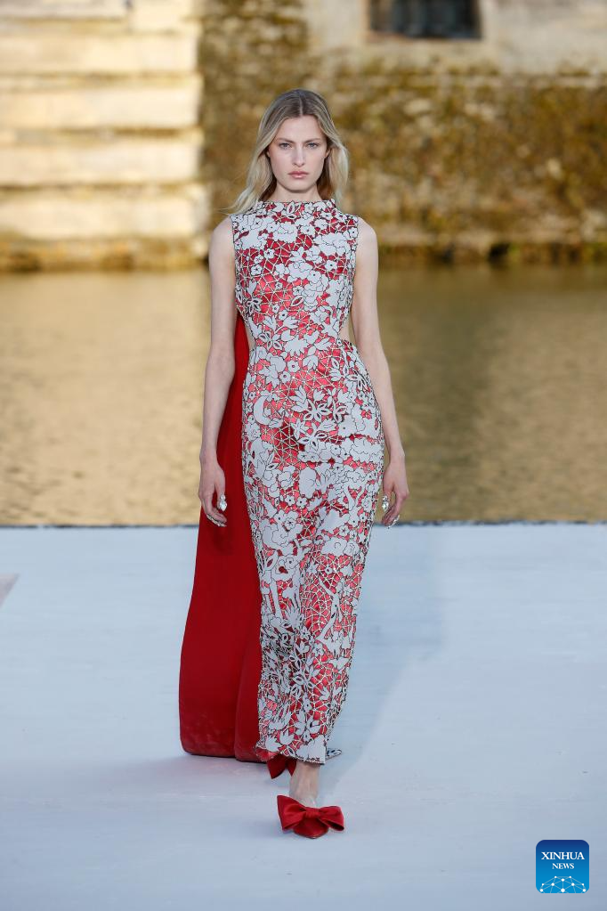 A model presents a creation of Valentino's Autumn/Winter 2023/2024 Haute Couture collections during Paris Fashion Week in Paris, France, July 5, 2023. (MeetEurope/Handout via Xinhua)
